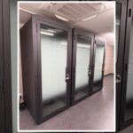 防音のガラスドアを閉めれば、ブース内部からの音漏れを防ぐのは勿論のこと、ブースの外の話し声や雑音もしっかりと遮音します。防音性能の検証では70db前後の外部の騒音もブース内では40db前後に軽減しました。