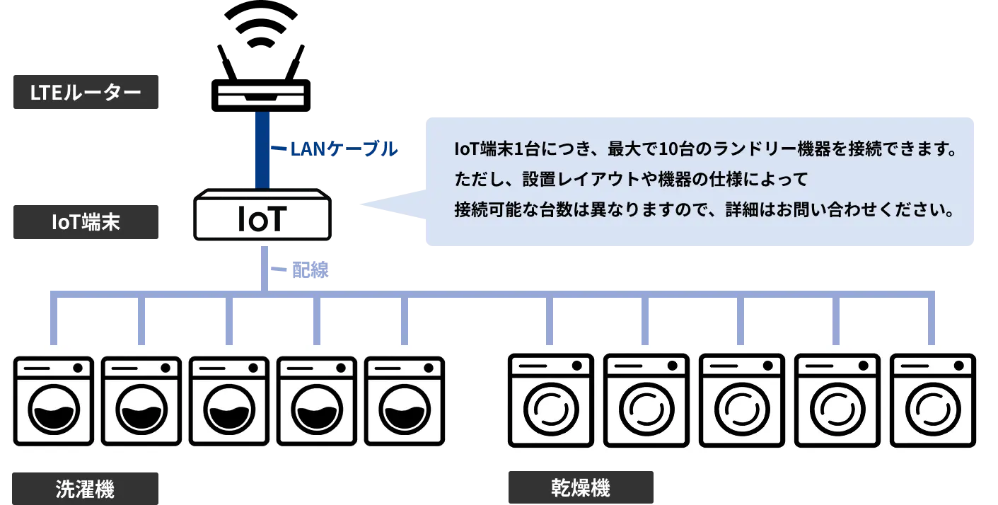 ※IoT端末1台につき、最大で10台のランドリー機器を接続できます。