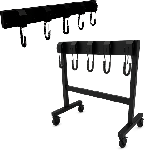 移動式なので、レイアウト変更や繁忙期にも柔軟に対応します。ケーブル筐体2台がセットとなっているため、一度に最大10つのスーツケースを預けることが可能です。
