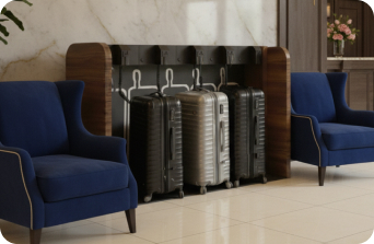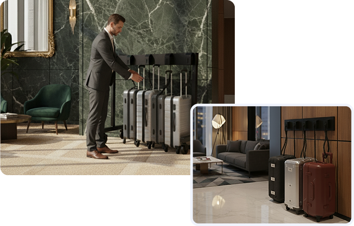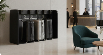 スーツケースをまとめて預けられるため、ロビーや共用部への常設利用に適しています。キャスターの有無を選択できます。